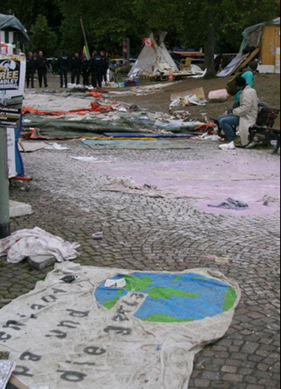 8.59 Uhr: Polizeisprecher André Sturmeit gibt bekannt, dass der VGH das „Betretungsverbot“ des Camps bestätigt, die Verfügung sei deshalb rechtskräftig. Man werde nun Verhandlungen mit den Campern aufnehmen und „versuchen, die Situation friedlich aufzulösen“. Gegebenenfalls müsse man die etwa 150 Menschen, die inzwischen im Camp sind, dann eben wegtragen.