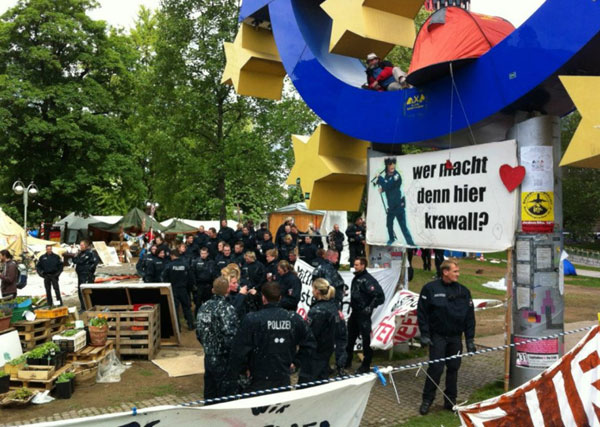 Occupy-Meldung aus dem Camp: Achtung: Repression findet statt, der Hauptbahnhof ist abgeriegelt, es wurden schon Menschen festgenommen! Es finden Taschenkontrollen statt!