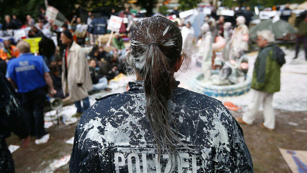 9.17 Uhr: Der Einsatzleiter der Polizei erklärt, dass die Leute, die passiven Widerstand leisten wollen, weggetragen werden, aber nicht mit einer Anzeige rechnen müssen. Man werde aber natürlich verhindern, dass sie sofort wieder zurückkehren. Ein Sprecher von Occupy wertet das als „Zeichen des Willens zur Deeskalation“.