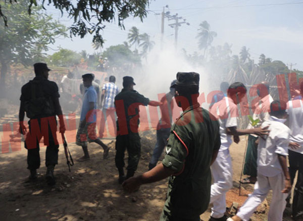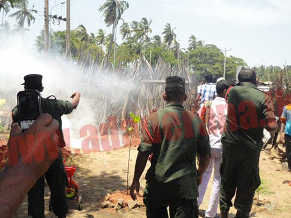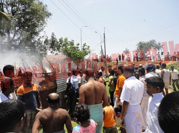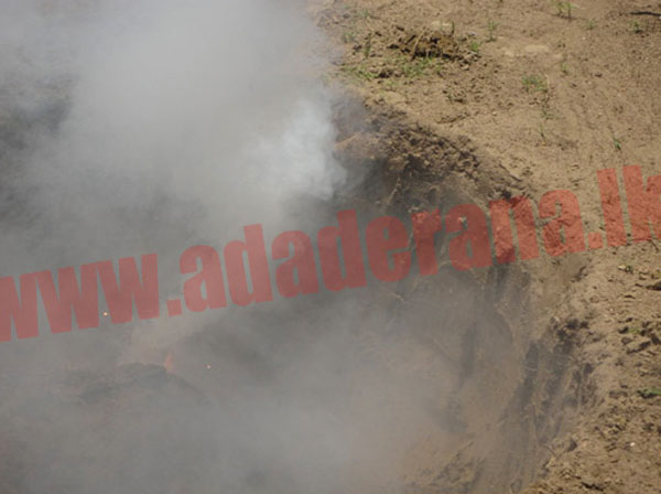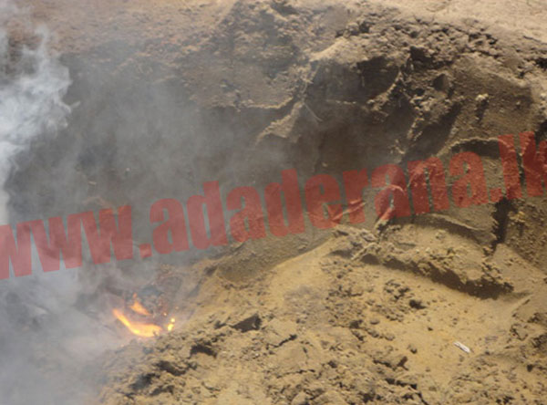 Eine große Menschenmenge in Turai Adi in Kinniya steht um ein Feuer, welches in einem Loch (04. Mai) plötzlich entstanden ist. Abdul Kader Farook, der in der Nähe von Kinniya Bridge lebt, wollte bei seinem Haus in einem Loch seinen Müll vergraben, als die Flammen aus der Erde nach oben schlugen. Die Menge geriet in Panik, bis die Polizei und das Militär die Szenerie erreichten und die angespannte Situation beruhigten.