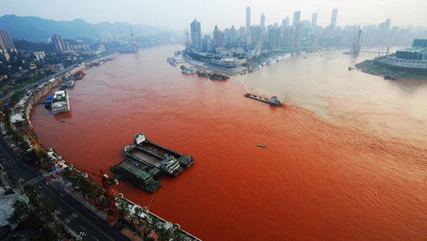 Für den Fluss Jangtse in China, bekannt als der „goldenen Wasserlauf,“ ist rot eine seltsame Farbe. Die rote Verfärbung begann den Jangtse, der längste und größte Fluss in China und die dritt längste Fluss der Welt, gestern in der Nähe der Stadt Chongquing, wo der Jangtse sich mit dem Jialin River verbindet, heimzusuchen.