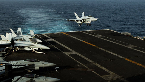 Die Ankunft des US-Flugzeugträgers „Eisenhower“ im Mittelmeer heizt Medienberichten zufolge Gerüchte über eine mögliche baldige Invasion in Syrien an.