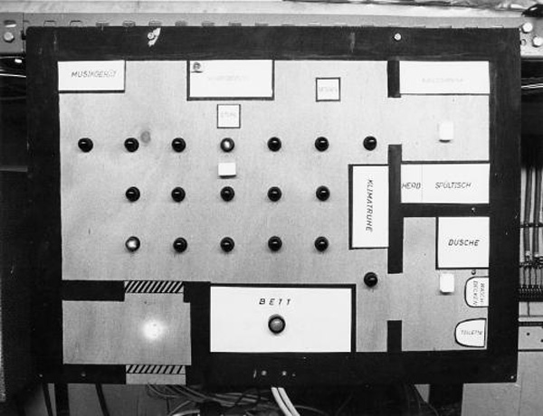 (Foto: Positionsbestimmung: Auf dieser Tafel zeigten Lämpchen den Standort der Versuchsperson in einer der Bunkerwohnungen an)