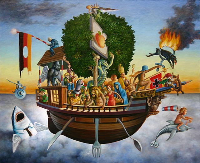Quellen: (Titelbild: Thomas Bühler, „Narrenschiff“, 2006, Berlin) PRAVDA TV/ suhrkamp.de / glanzundelend.de / ultimativefreiheitonline.wordpress.com vom 10.02.2014