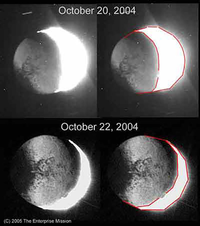 Genauso verhält es sich mit den Artefakten auf dem Mars, die ebenfalls sehr stark erodiert sind. Es sieht so aus, als ob Iapetus ein uraltes Raumfahrzeug oder eine Raumstation von irgendwo sein könnte, das/die irgendwann vor langer Zeit aus irgend einem Grund in einer Umlaufbahn um den Planeten Saturn geparkt wurde. Als Iapetus in unser Sonnensystem kam, sah er wohl noch ganz anders aus.