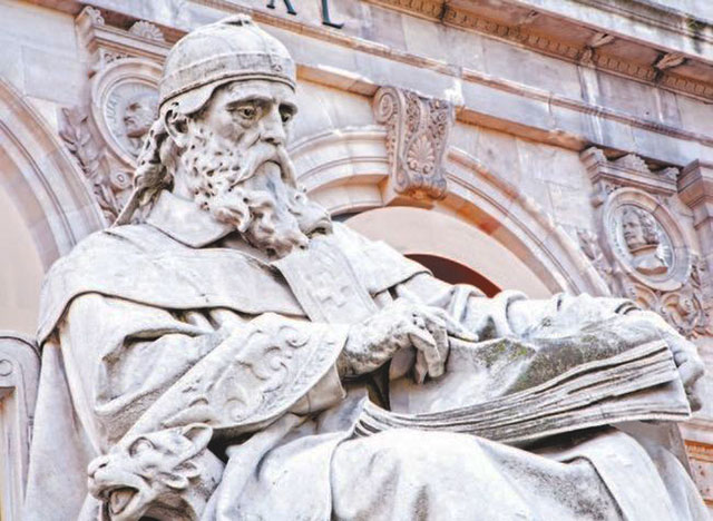 Isidor von Sevilla wurde um 560 in der antiken spanische Stadt Carthago Nova geboren, dem heutigen Cartagena, und verstarb am 4. April 636 in Sevilla. Er war nicht nur Bischof von Sevilla, Gelehrter, Schriftsteller und Übersetzer, sondern soll auch ein geschickter Handwerker für mechanische Geräte gewesen sein.