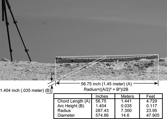 Als Antwort auf Petries Frage nach der Größe der Säge war es notwendig, den Radius der Säge zu berechnen; der Granitblock bei Abu Roash lieferte die Eigenschaften für die Berechnung, dass der Stein mit einer Kreissäge geschnitten wurde, die einen Durchmesser von über 37 Fuß [ca. 11 Meter] hatte. Dies kann man beinahe unmöglich glauben, aber die in Stein geschnittenen Beweise können von jedem gemessen werden und sind zur Verifizierung in Abbildung 7 und 8 dargestellt.