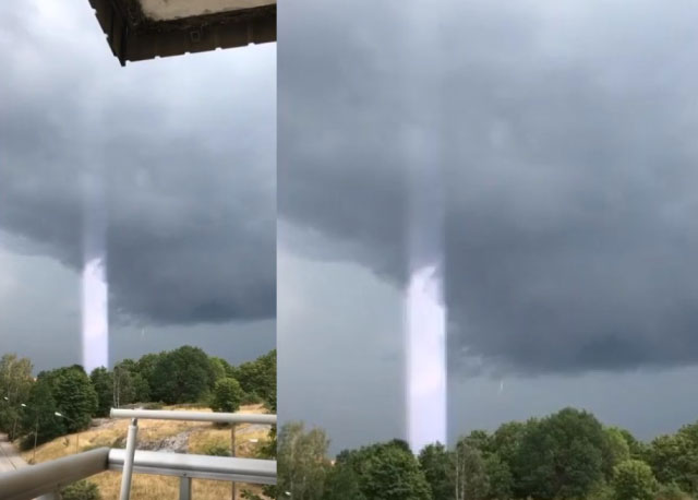 Die hier gezeigte Aufnahme ist an einem ganz normalen Sommertag vom Balkon eines Wohnhauses während eines Gewitters im schwedischen Eskilstuna entstanden.