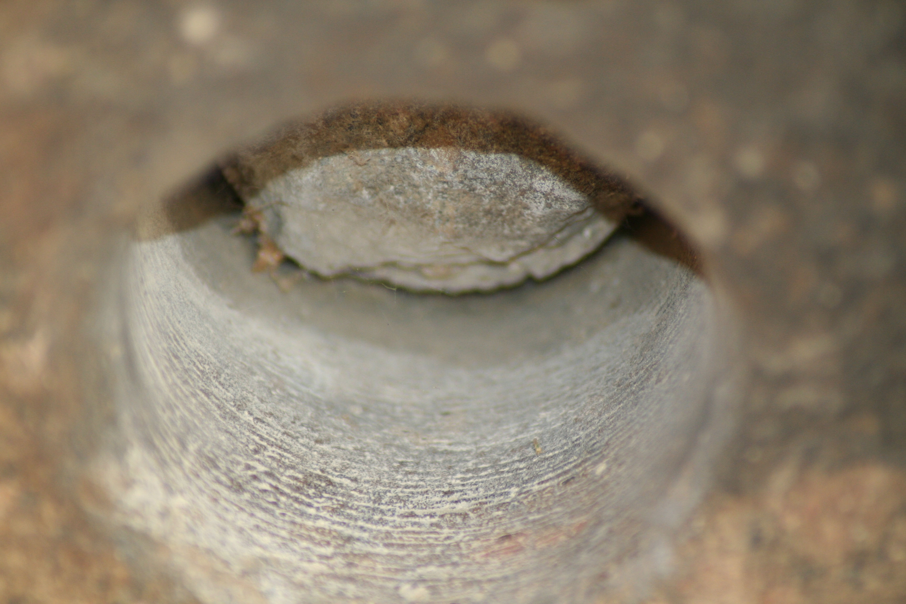 Um die Theorie der Ägyptologen zu testen, wie die alten Ägypter in Granit gebohrt haben, habe ich eine Röhre genommen, und ich habe eine Kurbel daran befestigt, und tatsächlich Sand und Siliziumkarbid verwendet, und nach vielen Stunden des Drehens und des Bohrens in dieses Stück Granit, endlich wurde es so tief, dass ich tatsächlich einen Kern rausholen konnte. Und der Grund dafür war, die Oberfläche nicht nur des Ganzen, sondern auch des Kerns zu betrachten.