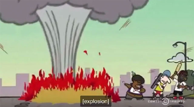 Der Hubschrauber explodiert in der Luft und stürzt auf dem Basketballplatz ab. Die Anzeige endet mit dem brennenden Wrack eines Hubschraubers. Siehe unteres Video.