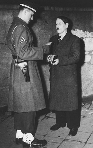 (Heinrich Noll, der als Hitler-Doppelgänger tätig war, wurde 1950 von einem US-Polizisten festgenommen)
