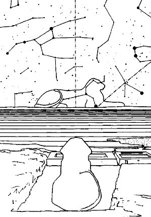 In dieser Zeit – dem Zeitalter des Löwen – hat demnach die Sphinx, die ursprünglich komplett einem Löwen geglichen haben könnte, direkt nach Osten auf das himmlische Gegenstück geschaut, als es im Morgengrauen des Frühlingsäquinoktiums im Jahre 10.450 v.Chr. aufstieg.