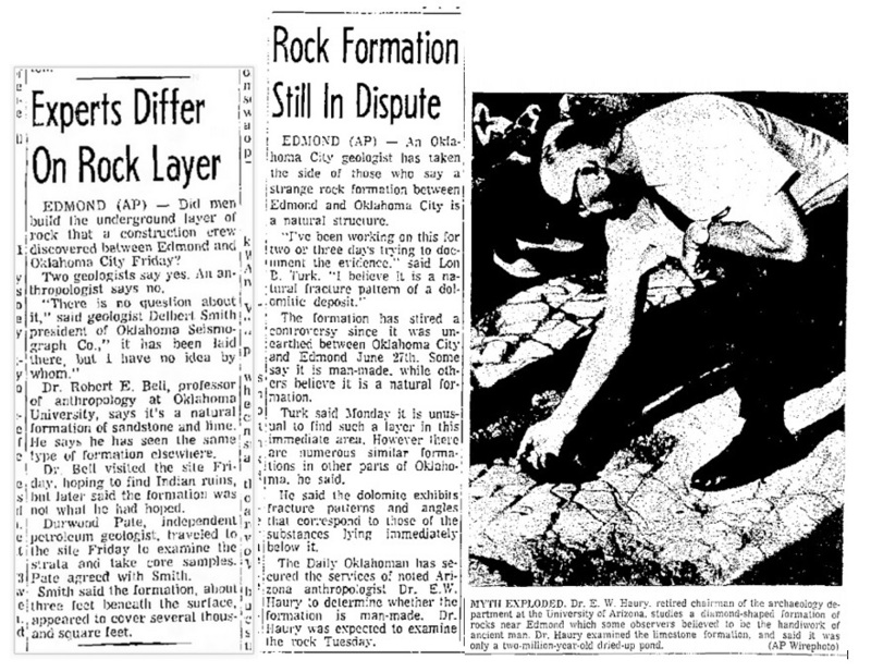 Am 27. Juni 1969 stießen Arbeiter, die in ein Felsplateau an der Broadway-Verlängerung der 122. Straße zwischen Edmond und Oklahoma City vordrangen, auf einen mysteriösen Fund, der bald darauf in der Fachwelt für große Kontroversen sorgen sollte.