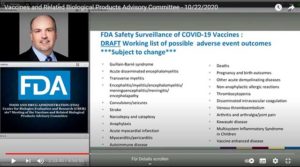 Screenshot von nur Zehntelsekunden aus einem FDA-Online-Konferenzvideo: Man wusste offensichtlich schon im Oktober 2020 um die verheerenden (Neben)Wirkungen der Impfung. Detektiv Internet sollte man nicht unterschätzen. Millionen Menschen auf der Welt sind Rechercheure und hier ist wieder einmal ein Ergebnis der Schwarmintelligenz. Irgendeiner findet’s immer und weiß, was er da gefunden hat. Es gibt ein … Sie wussten es vorher: Ein Meeting der FDA enthüllte versehentlich eine ellenlange Liste schwerer Impf-Nebenwirkungen (Video) weiterlesen