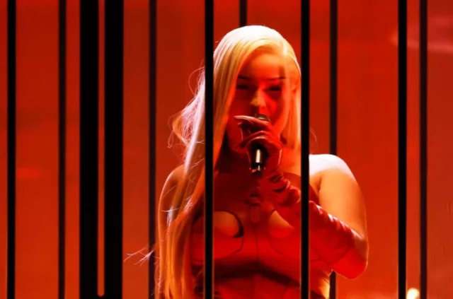 Petras, transsexuell, und Smith waren wie ihre Tänzerinnen und Tänzer in Rot gekleidet. Petras tanzte in einem Käfig, Smith trug Teufelshörner.