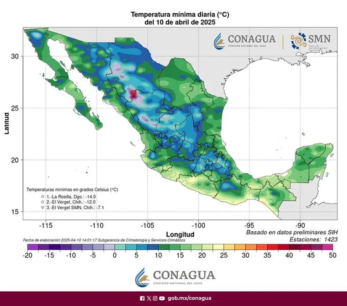 Am Morgen des 10. April herrschten in Teilen Mexikos für die Jahreszeit bemerkenswert niedrige Temperaturen.