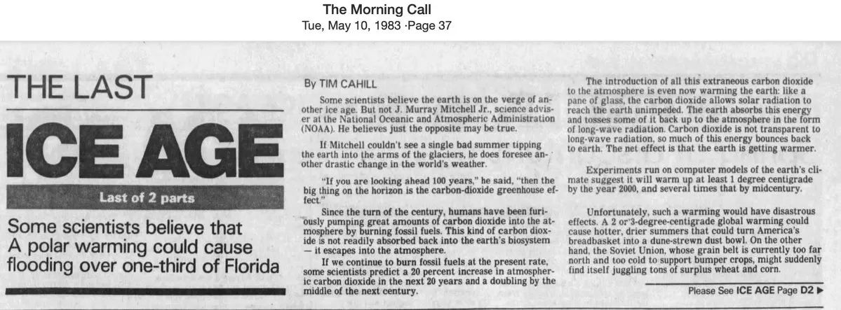 Vor 42 Jahren, am 10. Mai 1983, warnte The Morning Call, dass die „polare Erwärmung“ bald ein Drittel Floridas überfluten würde.