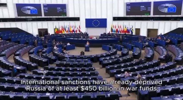 Der Parlamentssaal hat 720 Sitzplätze, so viele, wie das Parlament Abgeordnete hat, aber nur ein verschwindend geringer Teil war besetzt – vielleicht fünf Prozent. Sie haben es alle satt. (Anm. d. Übers.: Falls Sie das nicht gesehen haben, dieses Bild ist ein Screenshot eines Videos der Rede von Kallas vor dem fast leeren Parlament.)
