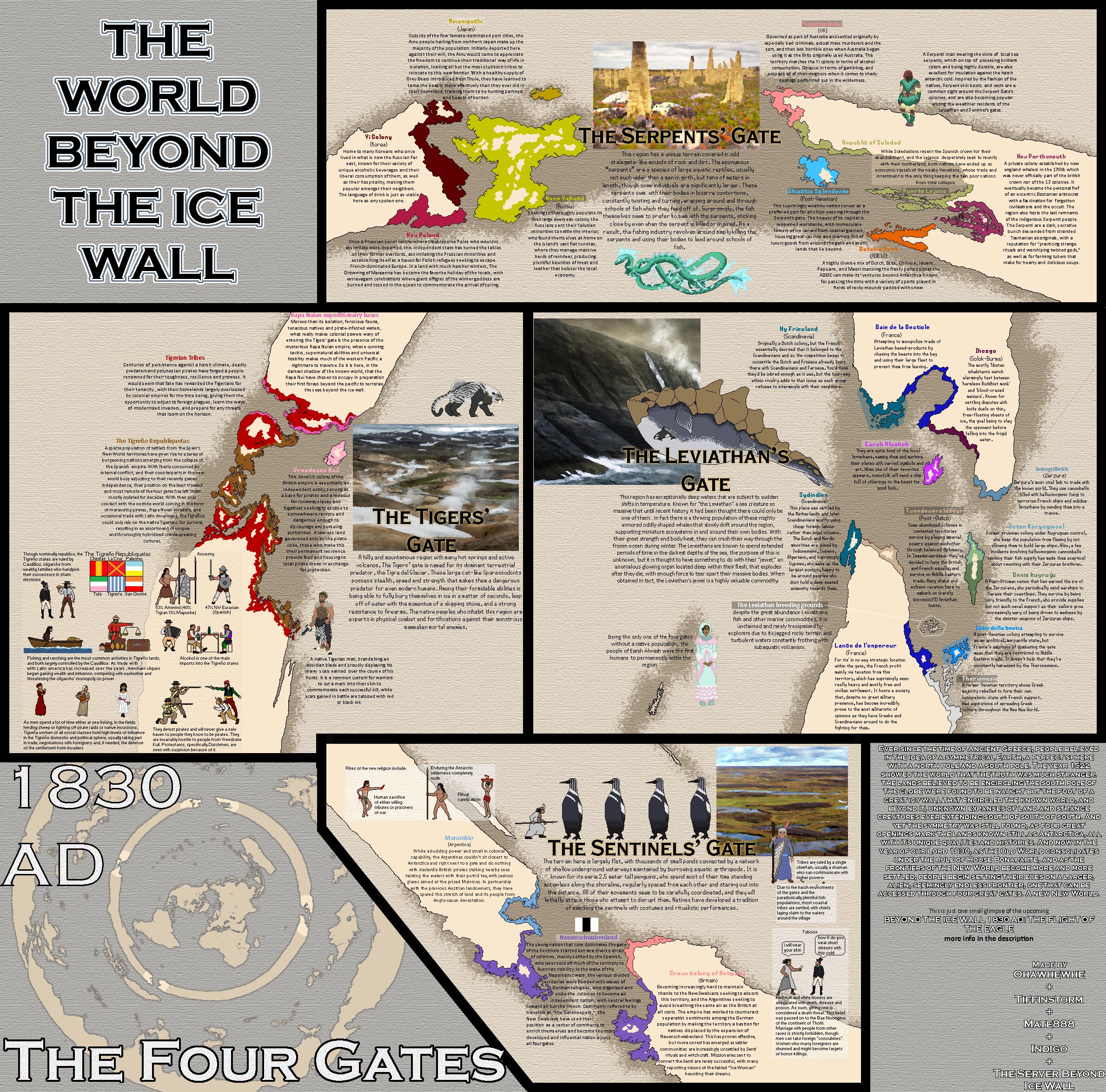 „Die Welt jenseits der Eiswand.l“ ist ein gemeinschaftliches Weltenbauprojekt, das Interessen wie Weltenbau, alternative Geschichte, spekulative Evolution, Verschwörungstheorien, Kryptozoologie, Conlanging, Ufologie, Mythologie, Okkultismus, Geopolitik und alle möglichen paranormalen und esoterischen Themen vereint, um eine Welt zu erschaffen, in der es nicht nur Kontinente jenseits der Eiswand gibt, sondern in der jede Verschwörungstheorie wahr ist.