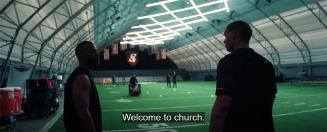 Als Cam das Feld betritt, sagt Zay zu ihm: „Willkommen in der Kirche.“