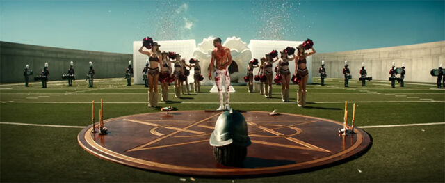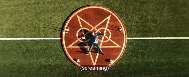 Der Filmtitel ist an sich schon symbolisch. In der Bibel wird „Him“ je nach Kontext oft für Gott oder Jesus Christus verwendet. Im Filmkontext bezieht es sich jedoch auf den nächsten großen Superstar, der passenderweise „GOAT“ genannt wird. Obwohl es sich eigentlich um ein Akronym für „Greatest of All Time“ handeln soll, gibt es im Film genügend Ziegen, die uns eindringlich daran erinnern, dass „GOAT“ auch eine Anspielung auf Satan ist. (Hollywood: Die Harry Potter Verschwörung)
