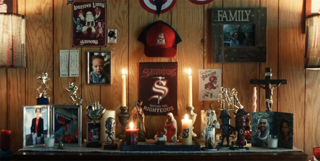 In Cams Haushalt gibt es einen Altar, der auf bizarre Weise die Hingabe seiner Familie zum Fußball und zum Christentum vermischt.