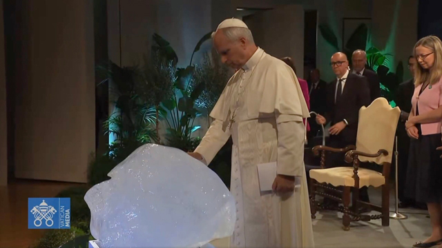„Wir werden Hoffnung wecken, indem wir von den Staats- und Regierungschefs fordern, mutig und ohne Verzögerung zu handeln“, erklärte Papst Leo, als er das gefrorene Wasser segnete, bevor er das Publikum fragte: „Werden Sie sich uns anschließen?“