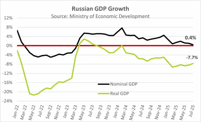 Die offiziellen Zahlen für Juli zeigen ein Wirtschaftswachstum von gerade einmal 0,4 Prozent. Sberbank-Chef German Gref berichtete im August von einem BIP von nahezu Null. Auf die ersten sieben Monate gerechnet summiert sich das Plus noch auf 1,1 Prozent, doch der Trend weist klar nach unten.