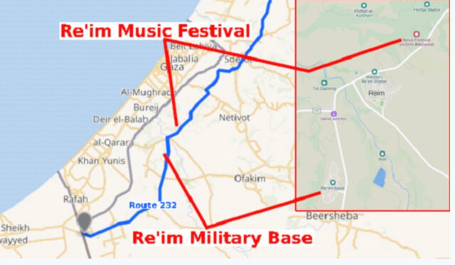 Einer der Hauptgründe, warum die israelischen Streitkräfte zunächst schlussfolgerten, die Hamas habe das Festival als potenzielles Ziel nicht gekannt, war, dass sich die ersten Terroristen dem Festival über die Route 232 und nicht über das offene Land von der Grenze zum Gazastreifen näherten. Laut den Ermittlungen der israelischen Streitkräfte war die Hamas auf dem Weg nach Netivot, bog jedoch an der Shokeda-Kreuzung falsch ab und landete schließlich auf dem Festivalgelände. Die offizielle Darstellung lautet daher, dass die ersten Hamas-Angreifer das Festival erreichten, weil sie sich verirrt hatten, und zwar über die Route 232 von Norden kommend.