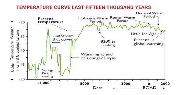 Dieses Temperaturdiagramm zeigt eine plötzliche Abkühlung zu Beginn der Jüngeren Dryas und eine plötzliche Erwärmung am Ende der Jüngeren Dryas.