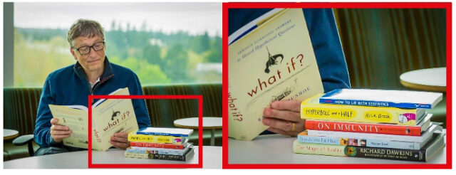 Jedoch die „normale unwissende Seele sieht einen Microsoft-Milliardär Bill Gates, welcher sich offensichtlich mit Gesundheit und/oder Statistik beschäftigt. Solche Fotos erwecken für den „Normalo“ den Anschein als wäre er sehr Intelligent und belesen.