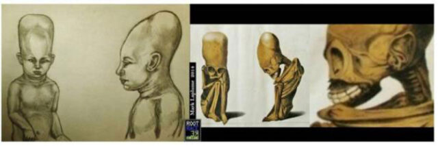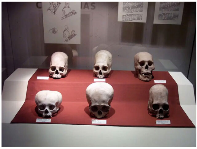 Viele davon sind das Ergebnis einer Praxis, bei der der Schädel in den ersten Lebensjahren eines Kindes absichtlich durch Binden deformiert wurde. Einige lassen sich durch natürliche Deformation erklären.