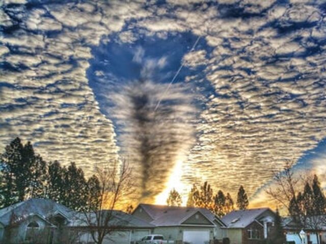 Dann gibt es noch das Cavum , auch bekannt als „Lochwolke“. Diese bizarre kreisförmige Lücke entsteht beim Starten oder Landen von Flugzeugen , wodurch die Wolkenschicht gestört wird und ein Phänomen entsteht, das Experten heute als neues „Phänomen“ bezeichnen.