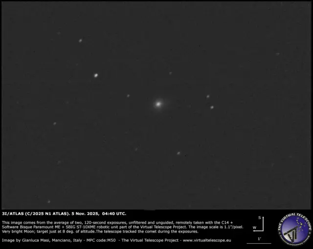 Bild von 3I/ATLAS nach dem Perihel, veröffentlicht am 5. November 2025 vom Virtual Telescope Project.