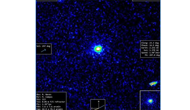 Bei einem typischen Kometen hätte dies zu einer massiven Koma mit Staub und Gas führen müssen, die durch den Strahlungsdruck der Sonne und den Sonnenwind in die Form eines typischen Kometenschweifs gepresst worden wäre, der von der Sonne wegzeigt.