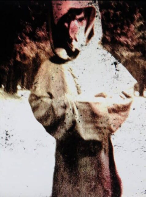Sie tragen braune Kutten und die Fotos sind vermutlich nachträglich koloriert worden. Der Fotograf, der die Außerirdischen ablichtete, ist mit abgebildet.