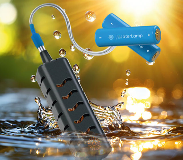 Das WaterLamp Notfall-Energiemodul erzeugt innerhalb von wenigen Sekunden sicheren Strom durch ein natürliches elektrochemisches Prinzip – aktiviert allein durch eine beliebige Flüssigkeit auf Wasserbasis.