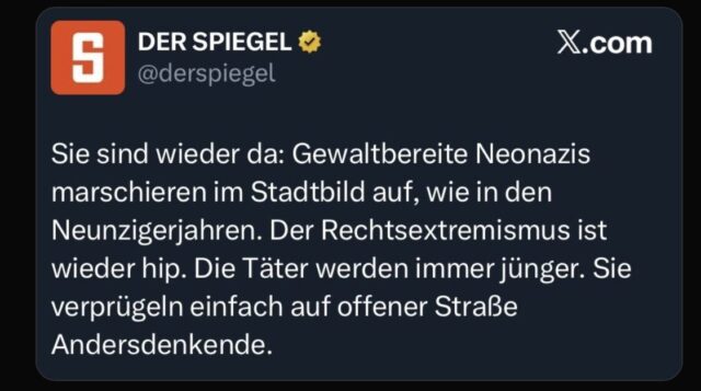 Der „Spiegel“ hat diesbezüglich ebenfalls eine ganz andere Sicht auf die Dinge und weist uns auf die wirklichen Gefahren des Alltags und im Stadtbild hin: