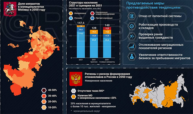 Es werden stabile ethnische Enklaven entstehen, die die ethnokulturelle Struktur der Großstädte verändern werden. In einigen Moskauer Stadtbezirken wird beispielsweise der Anteil der Migranten 50 % erreichen, im Durchschnitt der Metropole hingegen etwa 30 %.