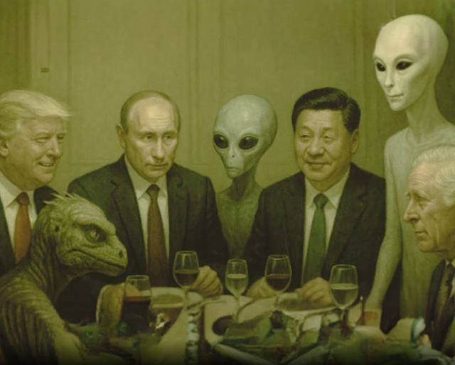 Draußen vor dem Saal kursieren Gerüchte darüber, wer wirklich am Tisch sitzt. Manche behaupten, bestimmte außerirdische Gruppen fungierten als Hüter vergessener Geschichten.