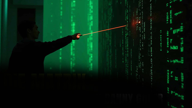 5. Sobald man den Matrixcode erkennen kann, kann man ihn vielleicht aufschreiben oder ihn einfach nur bewundern. Bewegt man den Laser ein wenig hoch oder runter, wird man etwas Verblüffendes erkennen: Der Code geht nicht mit, sondern der Laser offenbart neuen Code, der auf der Wand und gleichzeitig hinter der Wand zu erkennen ist.