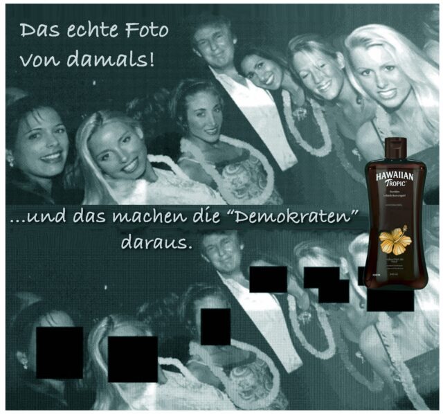 Das ORIGINAL-Foto ist seit Jahren öffentlich zugänglich. Es ist NICHT neu. Die Demokraten haben die Gesichter der erwachsenen Frauen (20+) mit einer gefälschten Zensur versehen, um Ihnen vorzugaukeln, dass es sich um Minderjährige handelt.