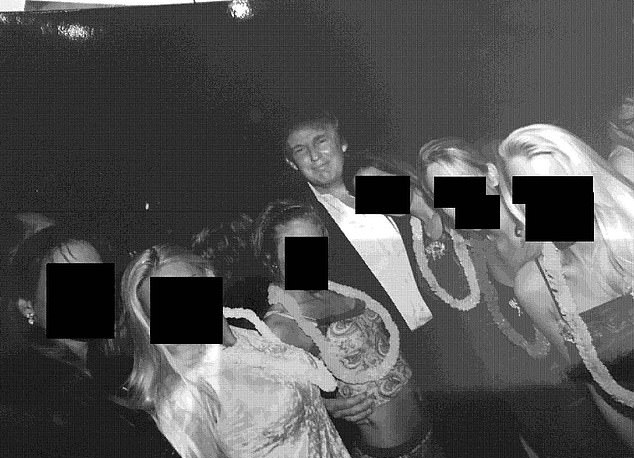 Auf einem anderen Bild ist Trump mit sechs Frauen zu sehen, deren Gesichter vom Komitee zensiert wurden; Datum und Ort sind unbekannt.