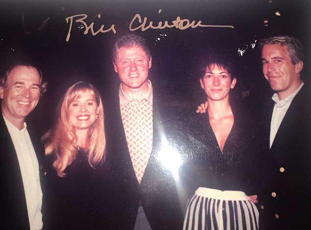 Der ehemalige Präsident Bill Clinton, dessen schwarzer Sohn Anfang des Monats bestätigte, dass „Pizzagate real ist“ , ist auf einem Foto mit Epstein, Ghislaine Maxwell sowie einem weiteren Mann und einer weiteren Frau zu sehen. Das Foto trägt offenbar Clintons Unterschrift in Goldtinte.