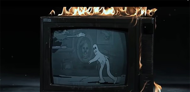 Der Clip beginnt mit einem brennenden Röhrenfernseher aus den 1980er Jahren , der flackert und mit dem tanzenden Geist aus dem Fleischer-Studios-Cartoon „Swing You Sinners!“ von 1930 zum Leben erwacht.