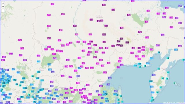 Sibirien hat heute Morgen (25. November) die ersten Werte von -50 °C in dieser Saison gemessen, wobei Delyankir auf -50,7 °C sank und Ust-Nera und Yurty ebenfalls die -50 °C-Marke erreichten. Oymyakon folgte dicht dahinter mit einer Tiefsttemperatur von -49,5 °C.