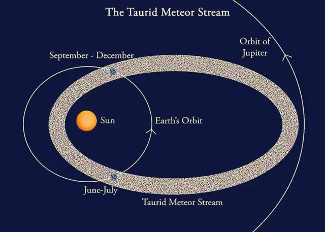 Etwa alle 2.500 bis 3.000 Jahre zieht der Kern des Tauridenstroms nahe an der Erde vorbei und erzeugt über einige Jahrhunderte hinweg deutlich intensivere Meteorströme. Zwischen den intensivsten Perioden der Nördlichen und Südlichen Tauriden liegt eine Lücke von einigen Jahrhunderten.⁴