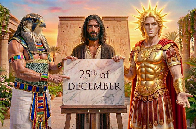 Zusammenfassung: Ra und Horus hatten Geburtstage, die näher am Juli und August lagen. Sol Invictus wurde irrtümlich der 25. gegeben; er hätte der 21. sein sollen. Jesus wurde der 25. von besorgten Kaisern und Päpsten gegeben, die heidnische Daten verdrängen wollten.