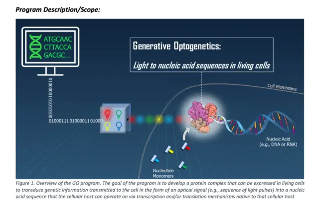 Die Defense Advanced Research Projects Agency (DARPA) verfolgt ein Biotechnologieprogramm, das die Erzeugung neuer DNA und RNA in lebenden Zellen unter Verwendung von Licht als einzigem Input ermöglichen soll.