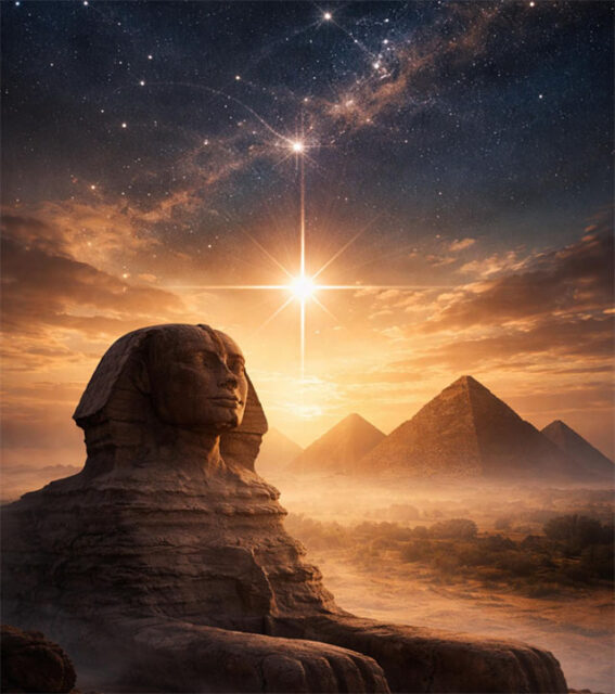 Obwohl er dann deutlich am Himmel zu sehen ist, beinhaltet die Idee des „Blicks der Sphinx“ präzise Konstellationen mit Gizeh. Eine Vorhersage deutet auf einen präzisen östlichen Aufgang im Oktober 2026 hin, nicht auf Ostern.